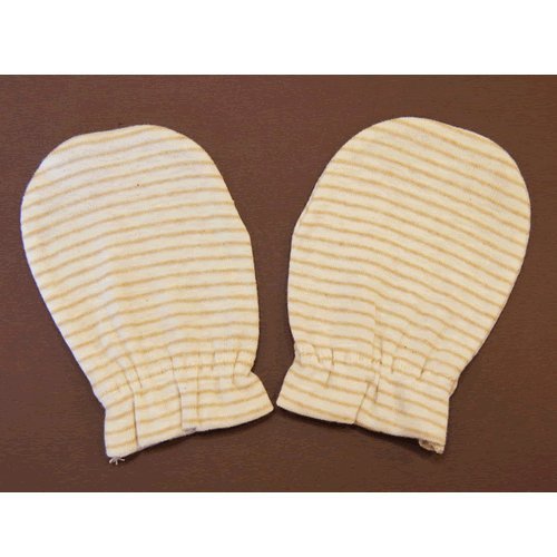 生まれたての赤ちゃんのてを優しく守ってくれるミトンです。 柔らかくすべすべした手触りのフライス地を使用しており、手を守るだけではなく、赤ちゃんが自分の爪でお肌を引っかいてしまうのを防いでくれます。 また、誤飲防止にもなります。 手首の部分にはゴムが入っているので、脱げにくいデザインになっているのも良いですね。 オーガニックコットンはお肌に優しいだけではなく、普通のコットンよりも空気をたくさん含んでいるので、保温保湿性にも優れており、少し寒い日の防寒用の手袋としてもお使いいただけます。 お色は柔らかいブラウンベースに、ナチュラルカラーのボーダーです。 ~ 生まれたての赤ちゃんに、肌に優しいものを ~ プリスティンの製品は全て、大人より何倍も敏感でデリケートな赤ちゃんの肌のことを1番に考えて作られています。 オーガニックコットン100%を使用しており、アレルギーのあるお子様でも安心してお使いいただけます。 柔らかい手触りで思わず頬ずりしたくなる心地良さです。