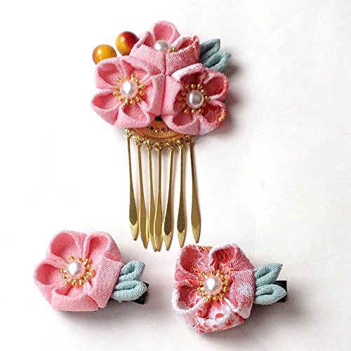 - ヘアーアクセサリーは3点セットピン留め感覚のクリップ付きで簡単。