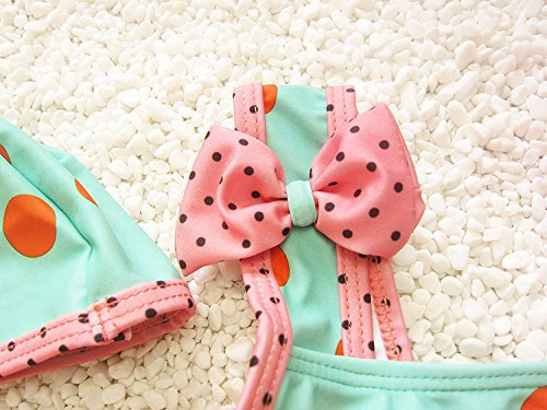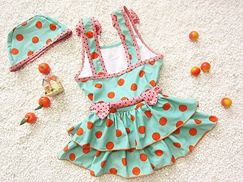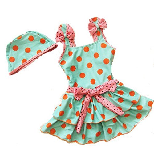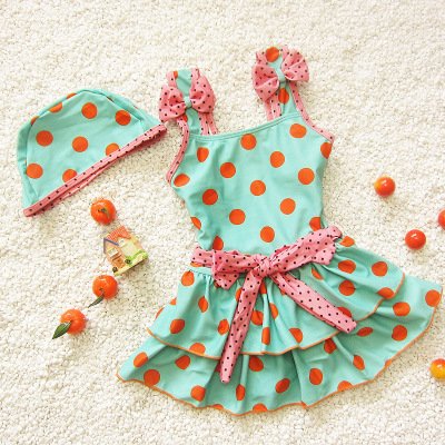 90〜100cm 帽子付き ベビー水着 水玉ワンピース 2段フリルリボン