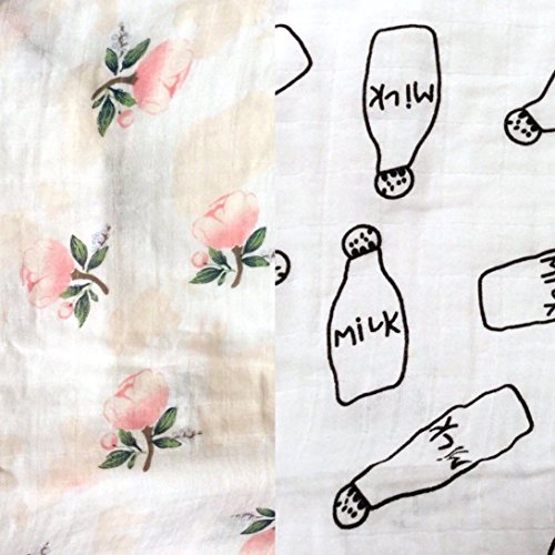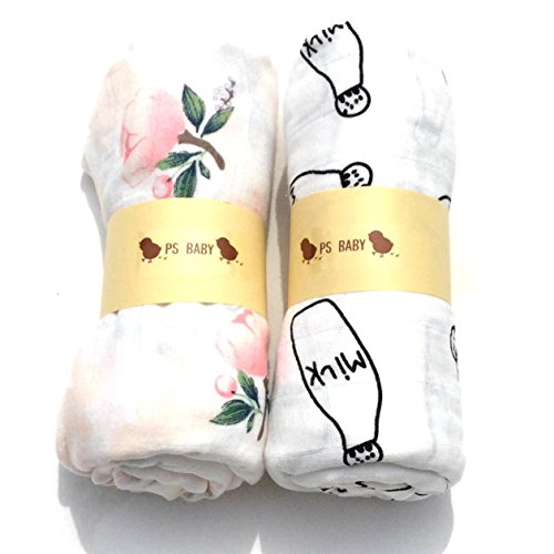 PS BABY 2組 モスリン コットン ベビー ガーゼ おくるみ ケット (バラxミルク)