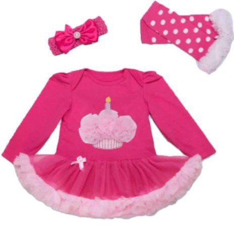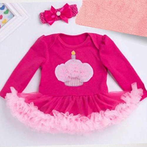 PS BABY バースデー ドレス ロンパース セット お誕生祝い わたしは1才 2才 (1才 ケーキ 80 長袖 ピンク)