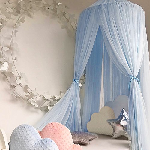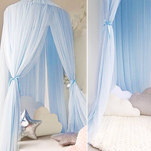 蚊帳 天蓋 ベッド蚊帳 ベビー用 子供用 プリンセス カーテン ヨーロッパ風 おしゃれ レース 虫除け 薄い 通気 (スカイブルー)