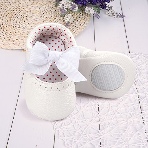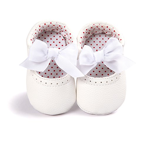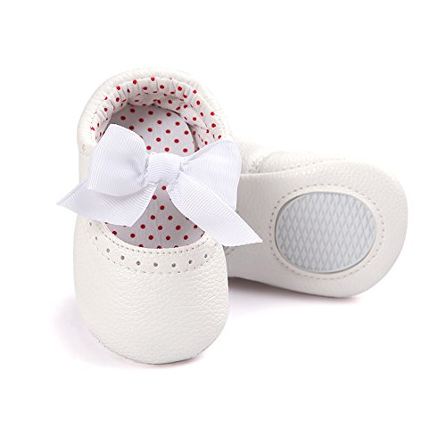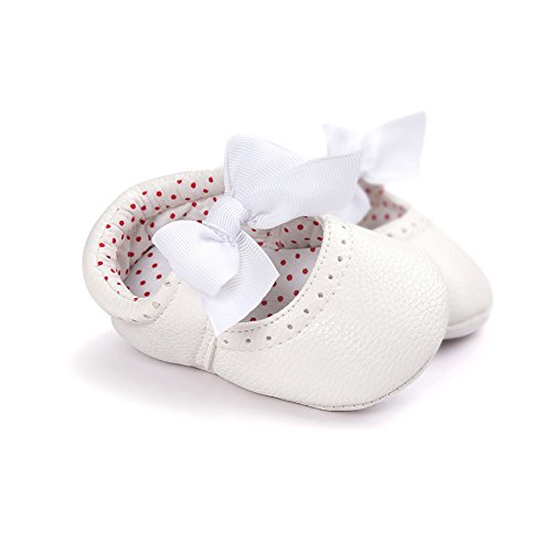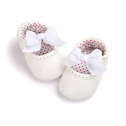 PUERI ベビー シューズ キッズ 靴 プリンセス シューズ 柔らかい 可愛い 蝶結び 赤ちゃん 幼児 春夏秋 (S, ホワイト)