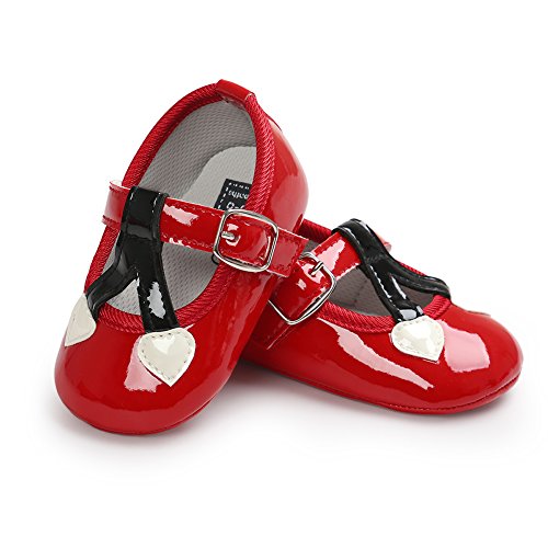 PUERI ファーストシューズ ベビーシューズ 柔らかい 歩行練習用 滑り止め 女の子 可愛い (S, レッド)