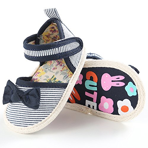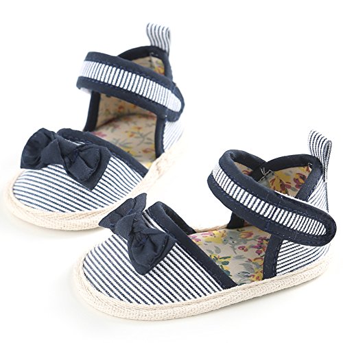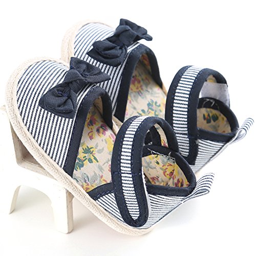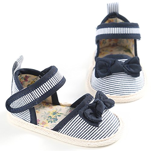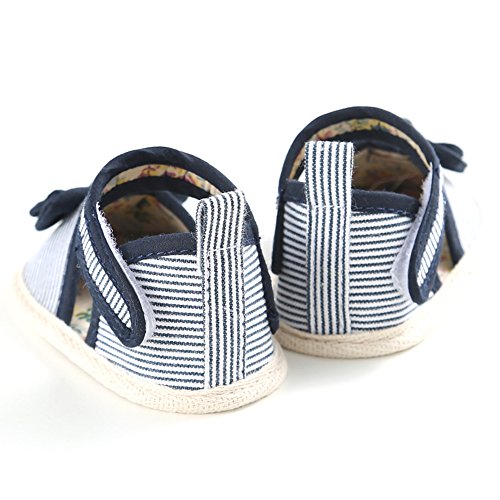 PUERI ベビーシューズ 柔らかい靴底 サンダル ストライプ 花柄 蝶結び 女の子 出産祝い プレゼント 夏(0-18ヶ月) (M, ネイビーブルー)