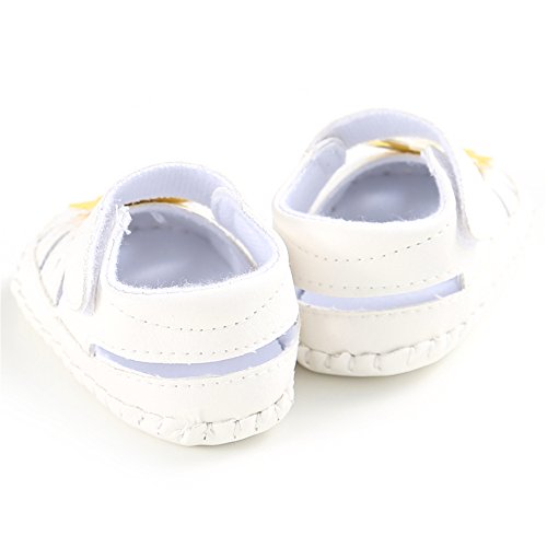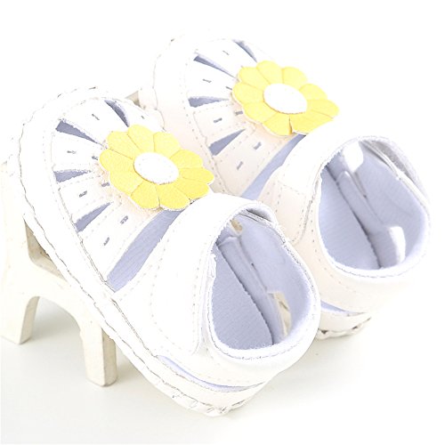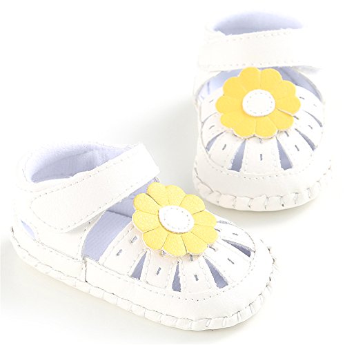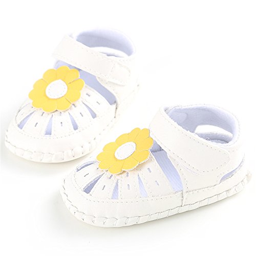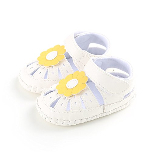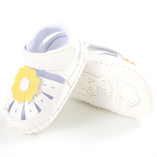 PUERI ベビーサンダル ベビーシューズ 赤ちゃん靴 柔らかい靴底 お花 女の子 出産祝い ギフト 夏(0-18ヶ月) (L, ホワイト&イエロー)