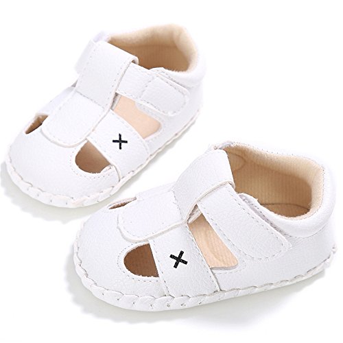 PUERI ベビーシューズ ファーストシューズ サンダル 柔らかい靴底 赤ちゃん 男の子 出産祝い プレゼント 夏(0-18ヶ月) (M, ホワイト)