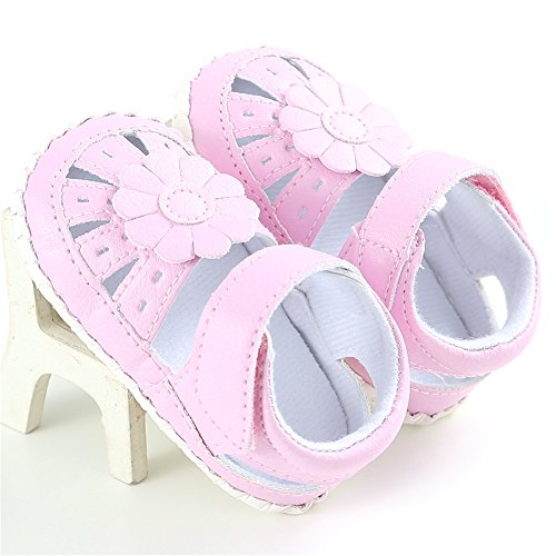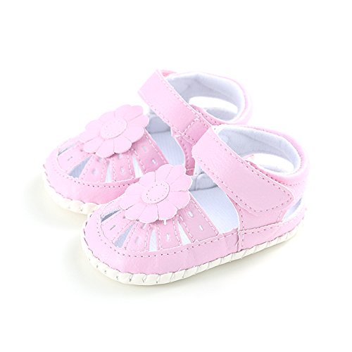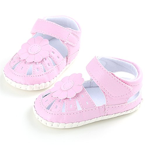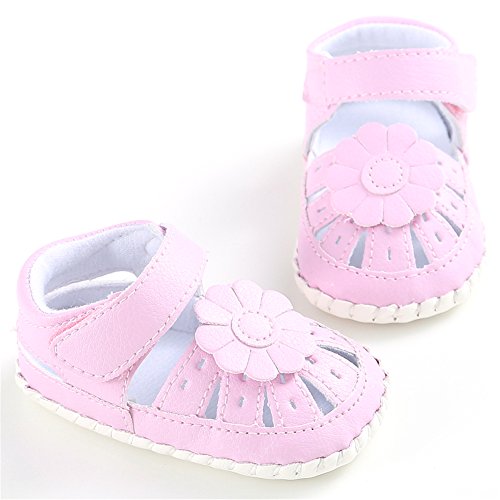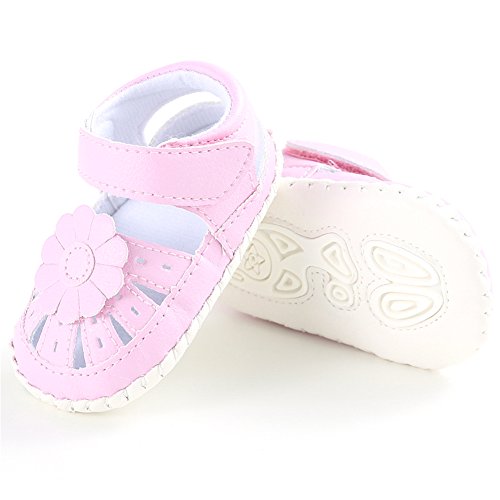 PUERI ベビーサンダル ベビーシューズ 赤ちゃん靴 柔らかい靴底 お花 女の子 出産祝い ギフト 夏(0-18ヶ月) (M, ピンク)