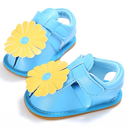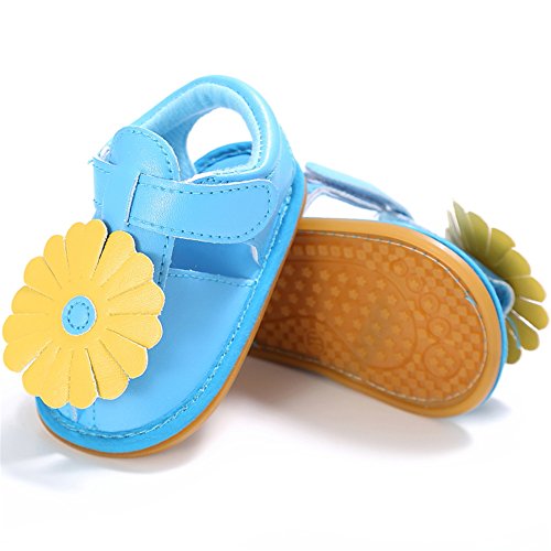 PUERI ファーストシューズ ベビーサンダル プラスチック靴底 お花 愛い 歩行練習 女の子 幼児 春夏(0-18ヶ月) (S, ブルー)