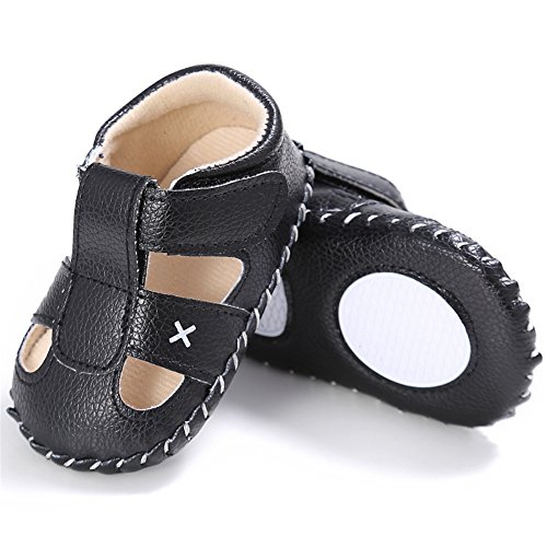 PUERI ベビーシューズ ファーストシューズ サンダル 柔らかい靴底 赤ちゃん 男の子 出産祝い プレゼント 夏(0-18ヶ月) (L, ブラック)