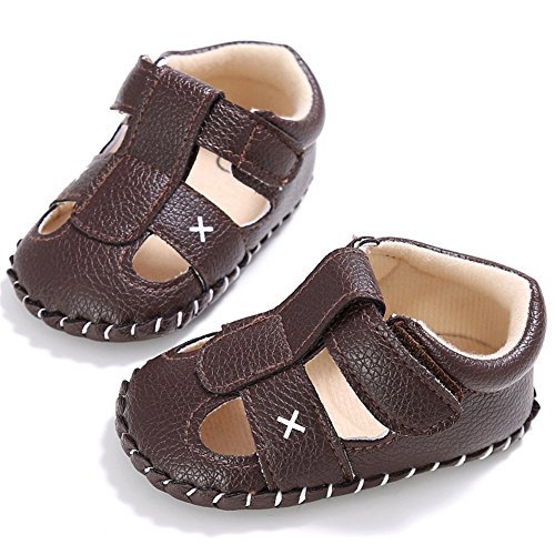 PUERI ベビーシューズ ファーストシューズ サンダル 柔らかい靴底 赤ちゃん 男の子 出産祝い プレゼント 夏(0-18ヶ月) (L, ブラウン)