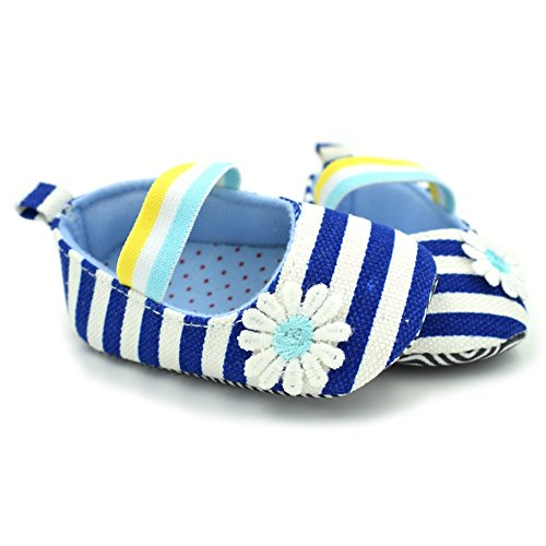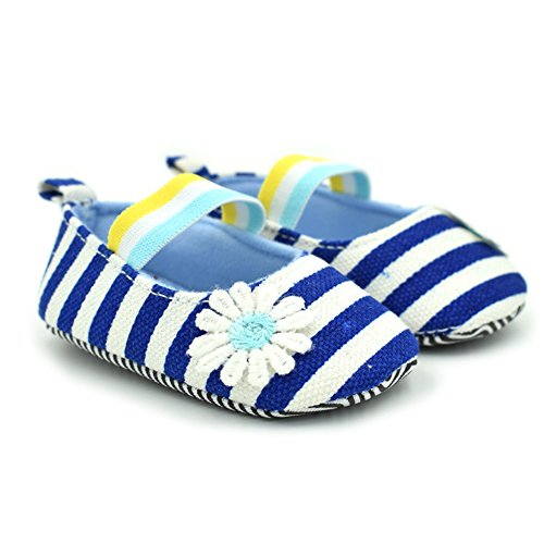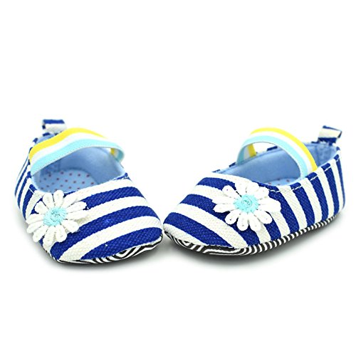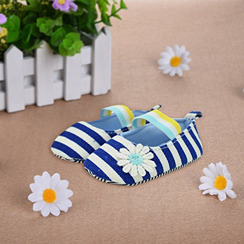 PUERI ファーストシューズ ベビーシューズ プリンセス シューズ ストライプ デイジー飾り 可愛い 柔らかい 春夏 (M, ブルー)