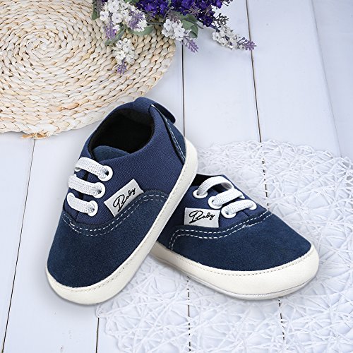 PUERI ファーストシューズ ベビーシューズ ベビー靴 柔らかい靴底 男の子 女の子 幼児 ベビー 歩行練習用 出産祝い プレゼント (L, ダークブルー)