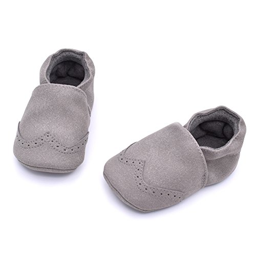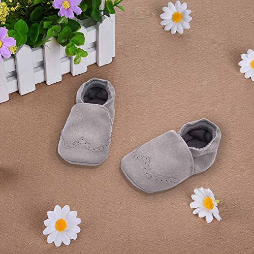 PUERI ベビーシューズ キッズ シューズ 柔らかい靴底 女の子 歩行練習用 出産祝い プレゼント 春夏秋に対応(0-18ヶ月) (S, グレー)