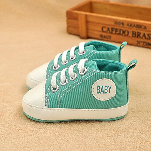 PUERI ベビーシューズ 女の子 男の子 ファーストシューズ 子供 靴 柔らかい靴底 歩行練習 滑り止め(0-18ヶ月) (L, グリーン)