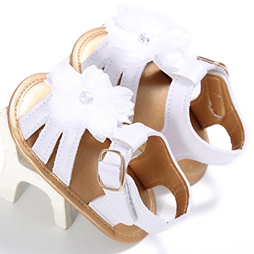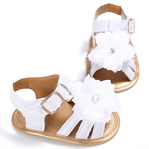 ベビーシューズ 赤ちゃんサンダル 女の子 靴 可愛い 花 モチーフ 快適 履きやすい ガールズ (L, ホワイト+ゴールデン)