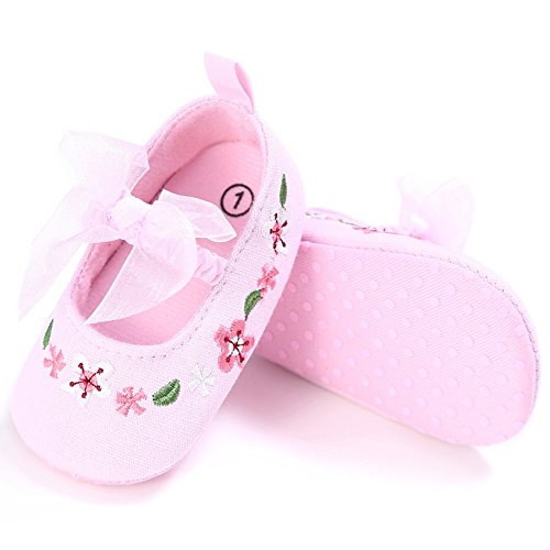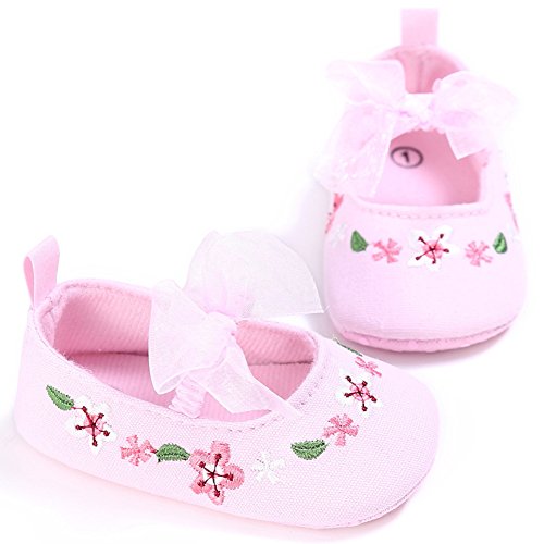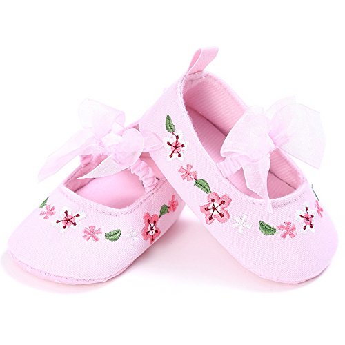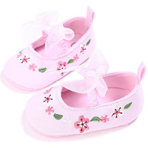 ベビーシューズ 女の子 ガールズ 赤ちゃん 可愛い 軽い 柔らかい 花柄 練習用 レース付き キャンバス (S, ピンク)