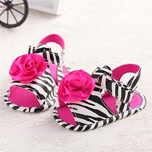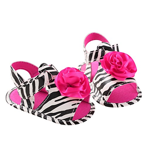 ベビーサンダル 赤ちゃんシューズ 靴 キッズ 女の子 花飾り ストライプ 夏用 快適 (S)