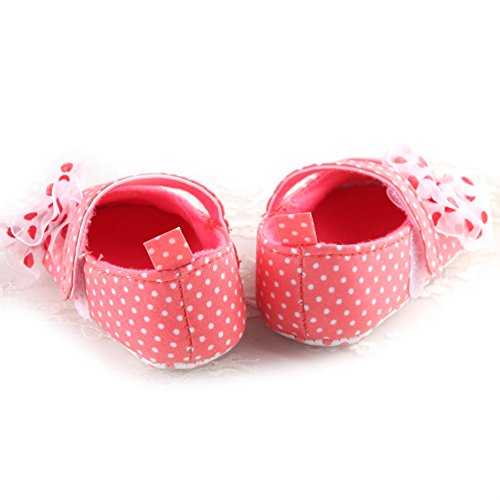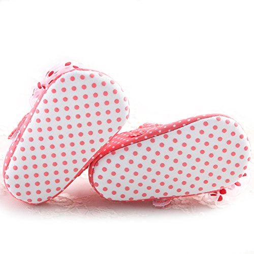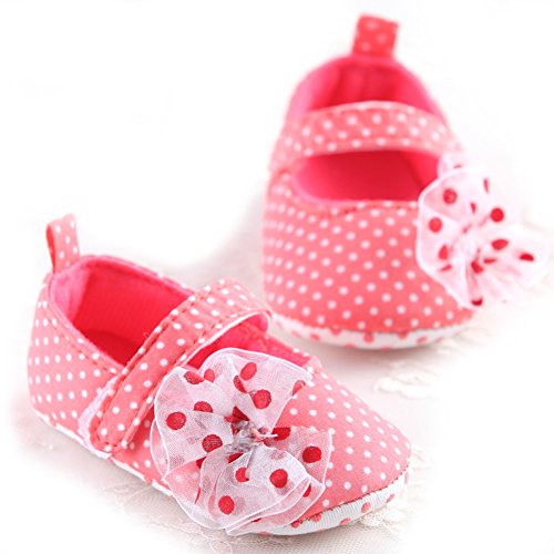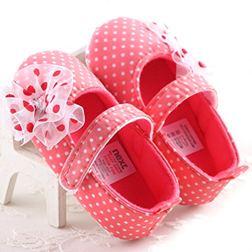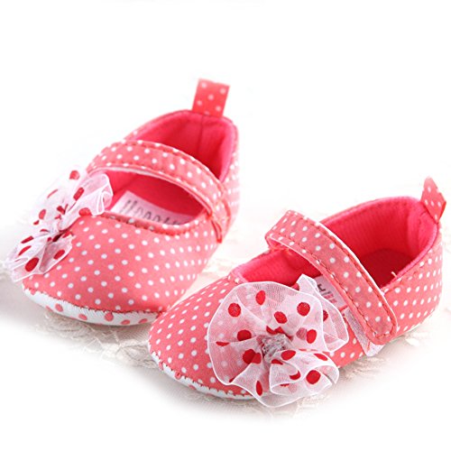ベビーシューズ 女の子 靴 赤ちゃん シューズ レース花 ドット 可愛い 軽い 快適 歩行練習 (L, スイカレッド)
