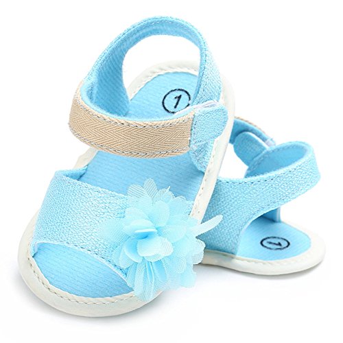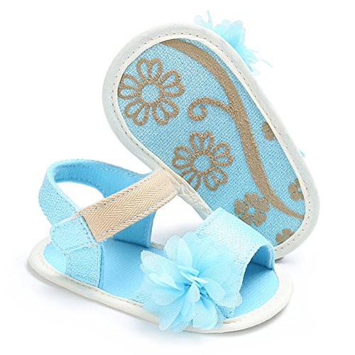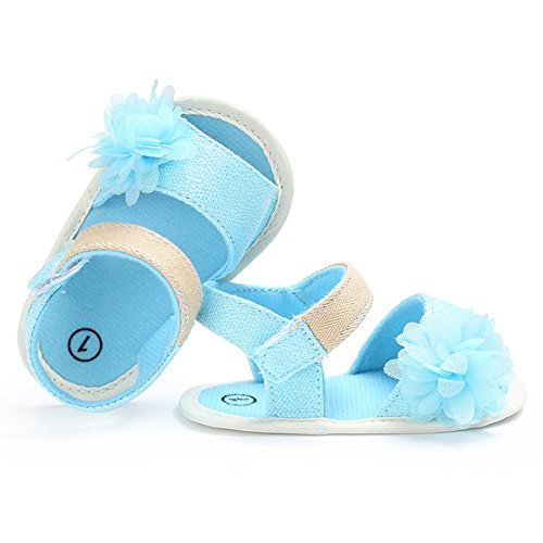 ベビーサンダル ファーストシューズ ベビー靴 女の子 ガールズ 赤ちゃん 花 可愛い 夏用(0-12ヶ月) (S, スカイブルー)