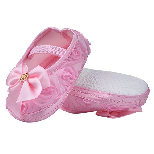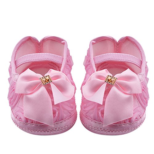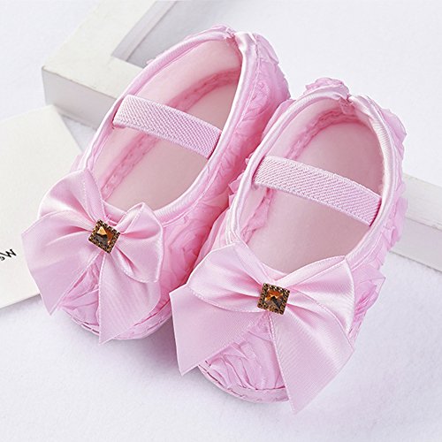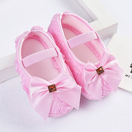 ファーストシューズ ベビー靴 女の子 可愛い 蝶結び ピンク 白 紫 柔らかい 快適 プリンセス シューズ (S, ピンク)