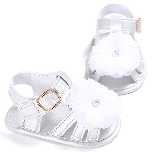 ベビーシューズ 赤ちゃんサンダル 女の子 靴 可愛い 花 モチーフ 快適 履きやすい ガールズ (M, ホワイト)