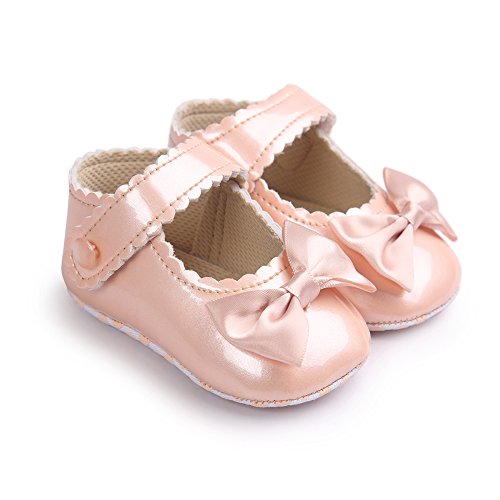 PUERI ベビー シューズ ファーストシューズ プリンセス シューズ 赤ちゃん靴 柔らかい 滑り止め 歩行練習 蝶結び (S, シャンパン)