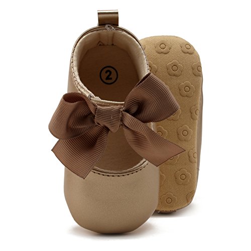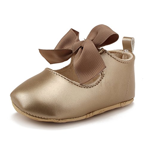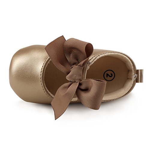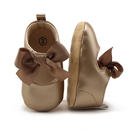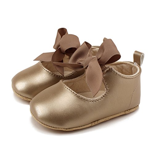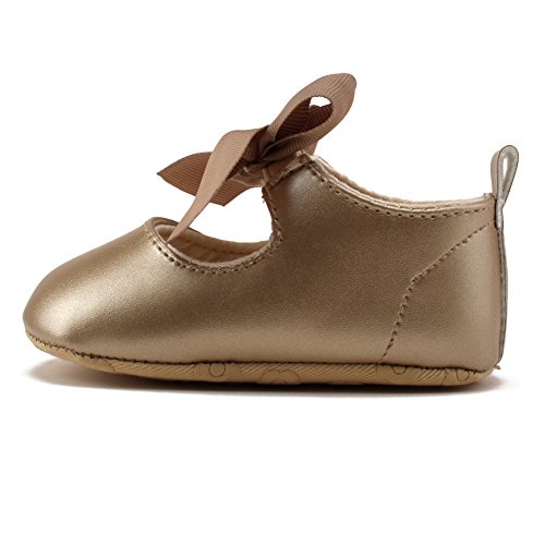 PUERI ベビーシューズ ファーストシューズ 柔らかい靴底 蝶結び プリンセス ガールズ 女の子 歩行練習 出産祝い プレゼント (L, ゴールド)