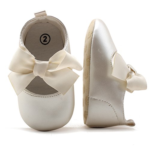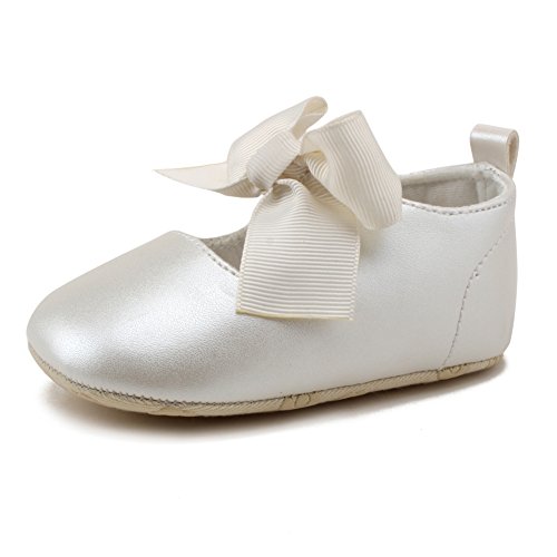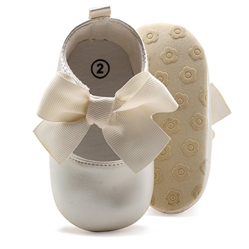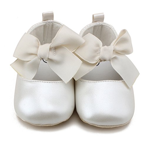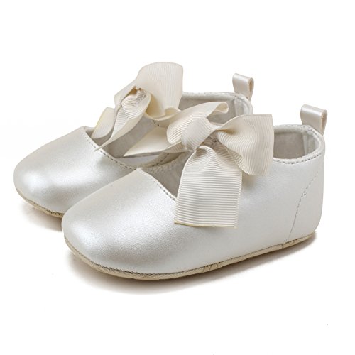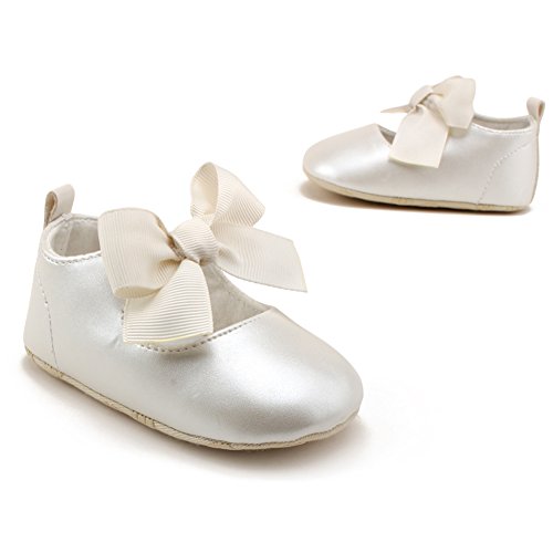 PUERI ベビーシューズ ファーストシューズ 柔らかい靴底 蝶結び プリンセス ガールズ 女の子 歩行練習 出産祝い プレゼント (M, ホワイト)
