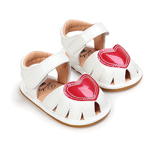 PUERI ファーストシューズ 赤ちゃん靴 ベビーシューズ ベビーサンダル 可愛い ソフト 滑り止め 歩行練習に対応 0-18ヶ月に対応 (S, ホワイト)