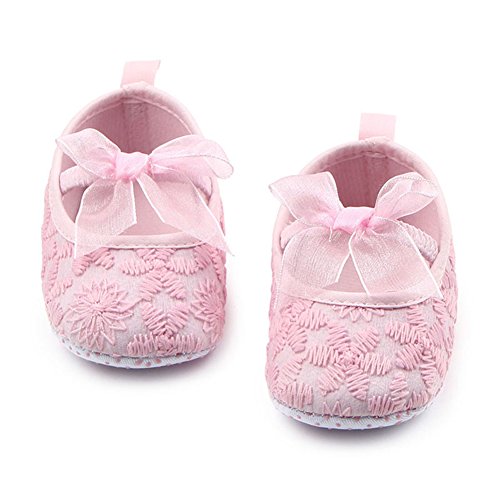 PUERI ファーストシューズ ベビーシューズ プリンセス シューズ カジュアル 蝶結び 滑り止め 可愛 素敵 柔らかい 快適 (S, ピンク)