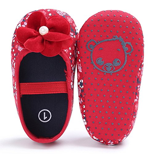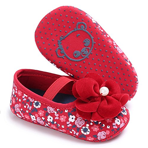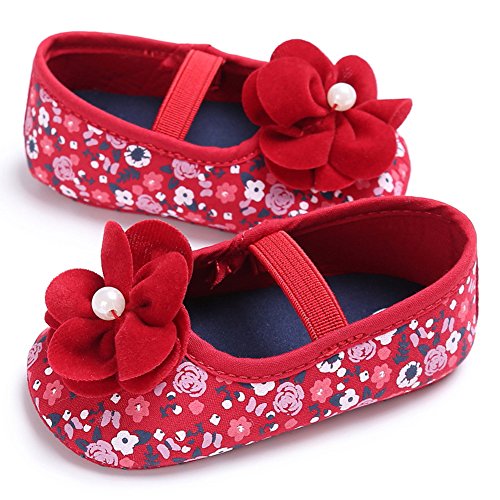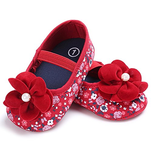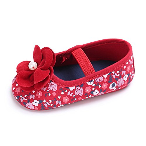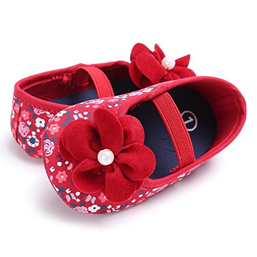 ベビーシューズ ベビー靴 ファーストシューズ 花柄 女の子 ガールズ 赤ちゃん 可愛い 軽い (S, レッド)