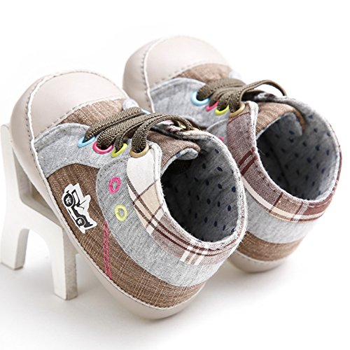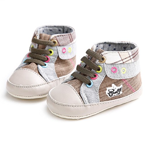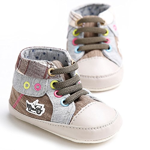 ベビーシューズ ファーストシューズ キャンバス 男の子 ファッション 滑り止め 歩き学び (S, ブラウン)