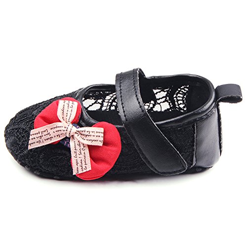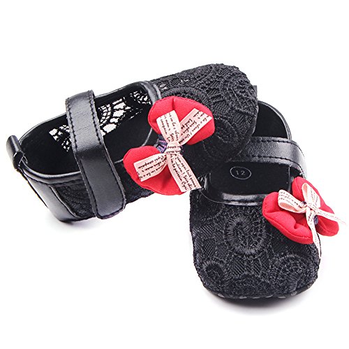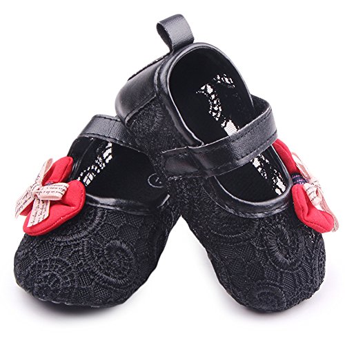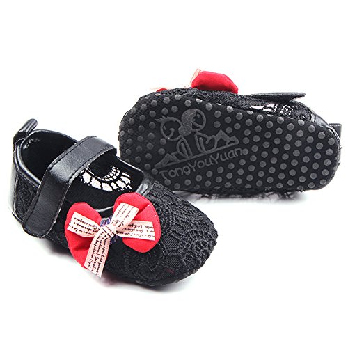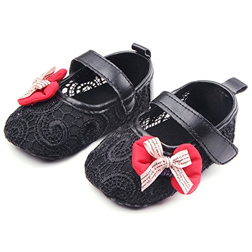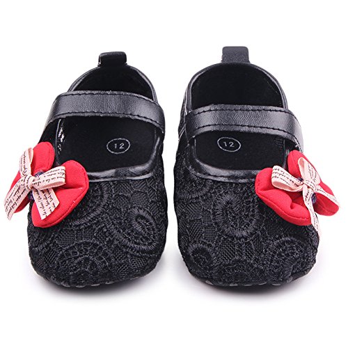 PUERI ファーストシューズ 歩行練習 ベビーシューズ キッズ 靴 女の子 ガールズ 蝶結び 可愛い 春夏秋に対応 (L, ブラック)