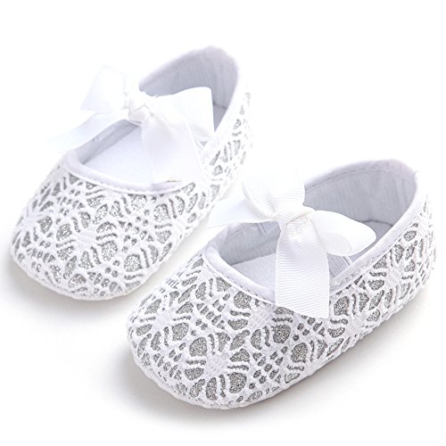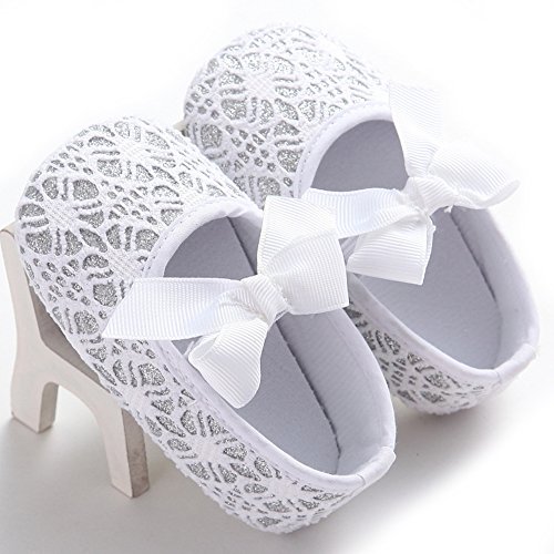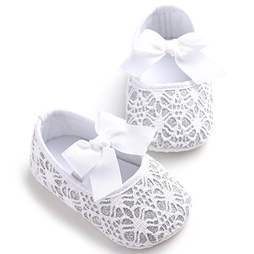 ファーストシューズ ベビーシューズ ベビー靴 可愛い 蝶結び 女の子 柔らかいソール 練習用 (L, シルバー)