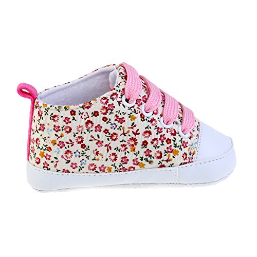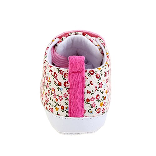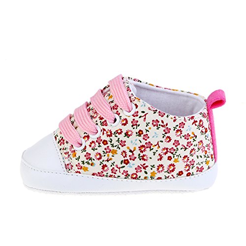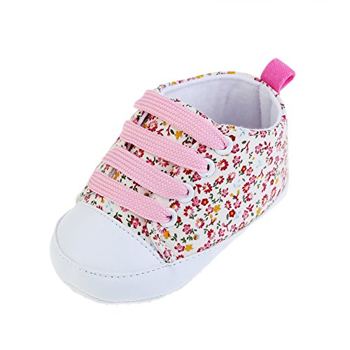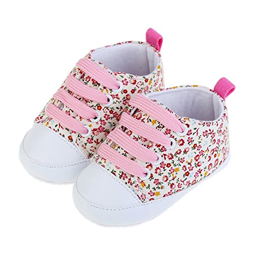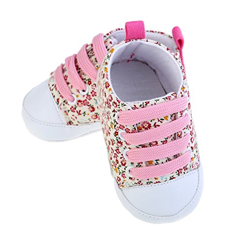 PUERI ファーストシューズ ベビー靴 ベビーシューズ 花柄 練習用 滑り止め 柔らかい (M, ピンク)