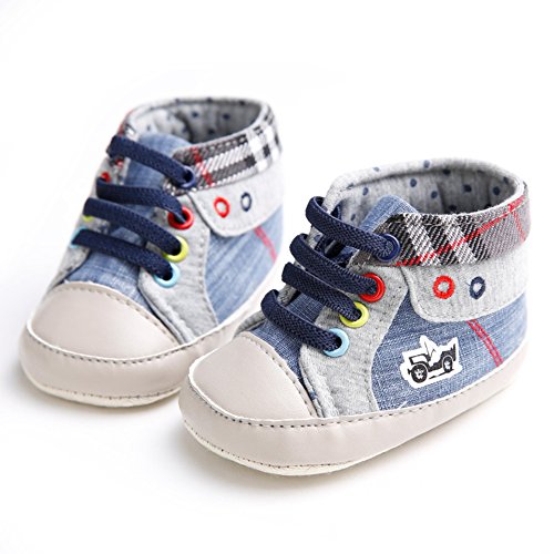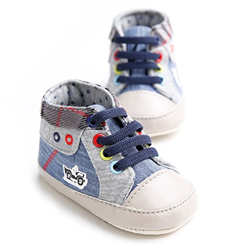 ベビーシューズ ファーストシューズ キャンバス 男の子 ファッション 滑り止め 歩き学び (S, ブルー)