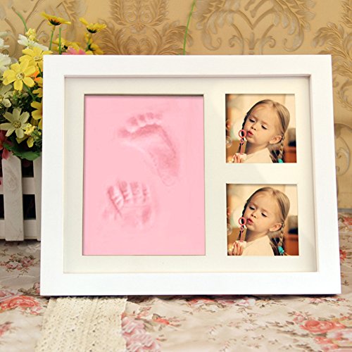 フォトフレーム 出産祝い 記念品 粘土 ベビー 赤ちゃん 足形 手形 写真 ギフト プレゼント 新生児記念品 木製 (ピンク)