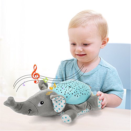 赤ちゃん ぬいぐるみ おもちゃ 寝かしつけ用 光 音楽 メロディ 動物 可愛い 出産祝い 誕生日 プレゼント (象)