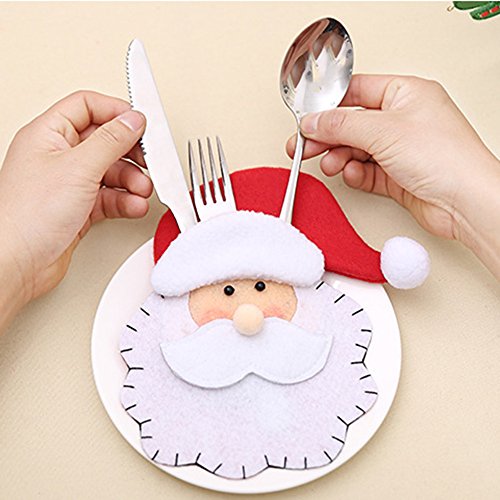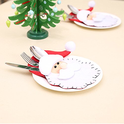 ナイフフォークバッグ カトラリーケース スプーン カバー クリスマス飾り 食器 収納 サンタクロース 4枚セット (B)