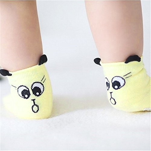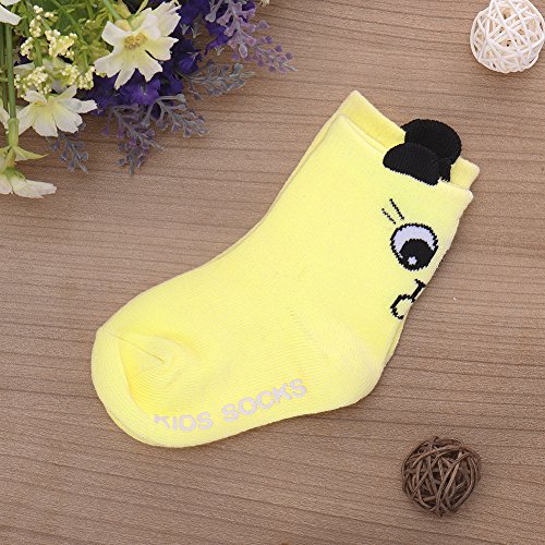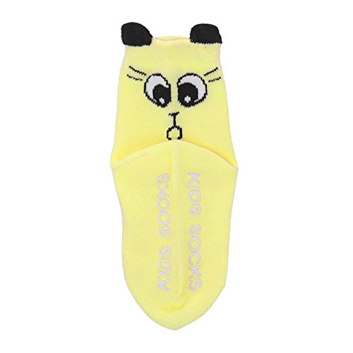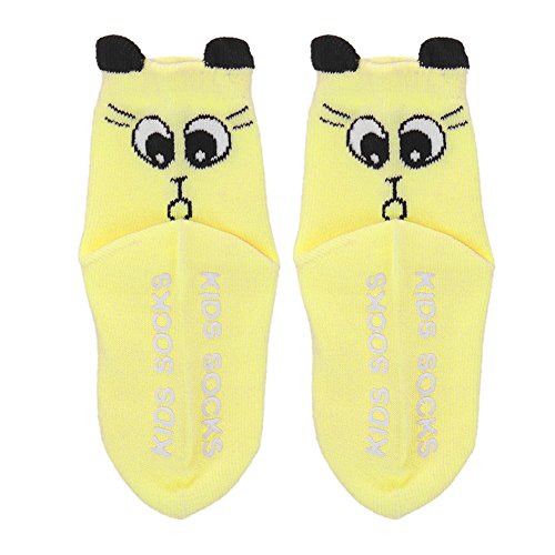 PUERI ベビー ソックス 靴下 キッズ 男の子 女の子 赤ちゃん 柔らかい 可愛い 綿100% 滑り止め(0-4歳) (S, イエロー)