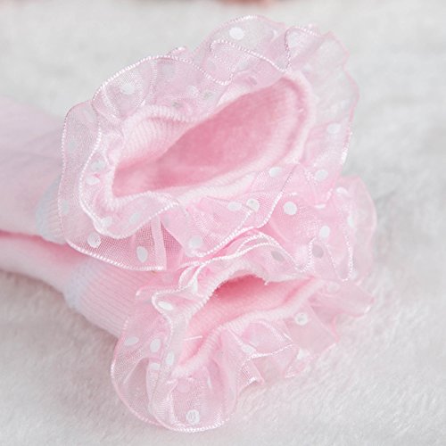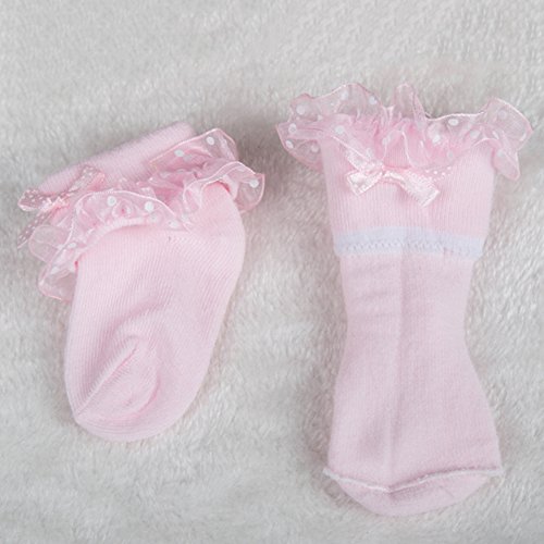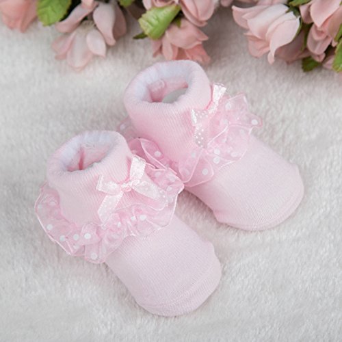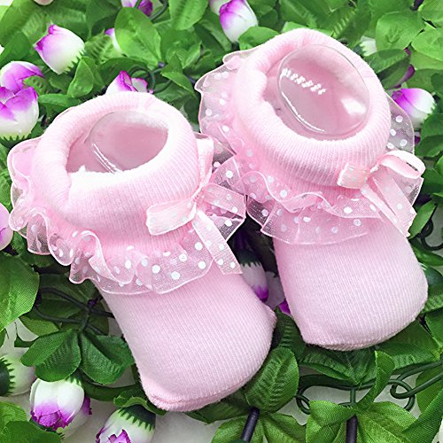 PUERI ベビー ソックス 赤ちゃん 靴下 新生児 コットン 蝶結び レース付き プリンセス 女の子 可愛い (ピンク)