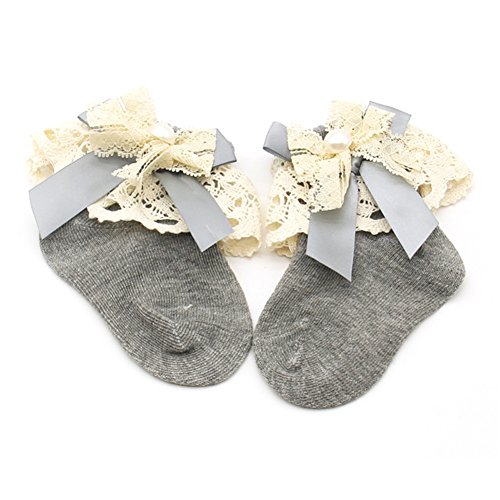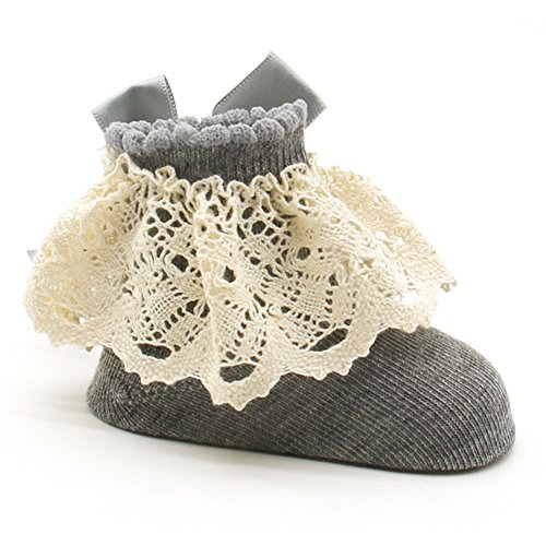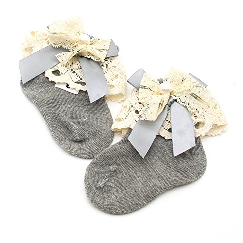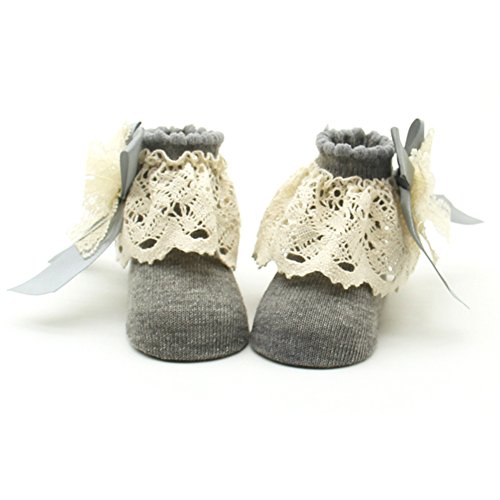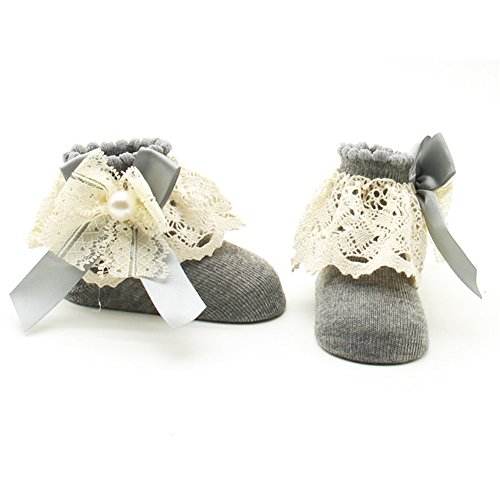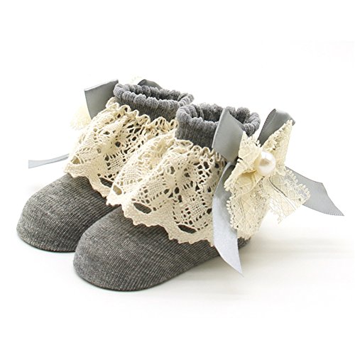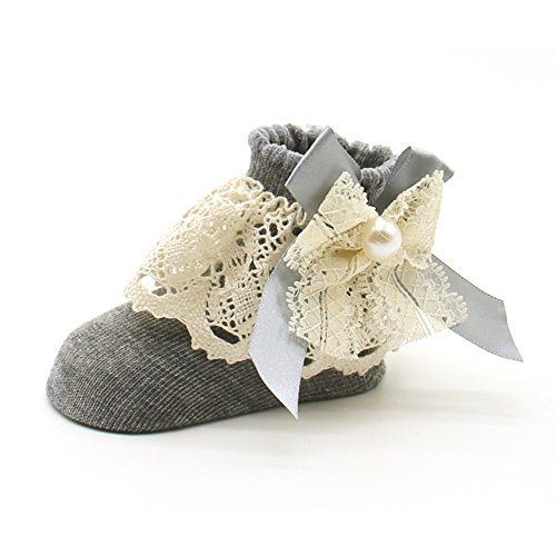 PUERI ベビー 靴下 ソックス 新生児 赤ちゃん ベビー コットン レース プリンセス 女の子 新生児 可愛い 出産祝い 誕生日 (グレー)