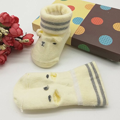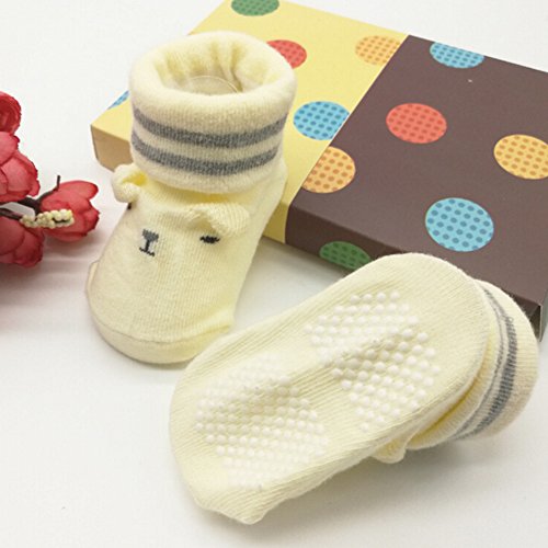 ベビー 靴下 ソックス 新生児 女の子 男の子 可愛い ソフト 出産祝い コットン 滑り止め 0-6ヶ月 (イエロー)