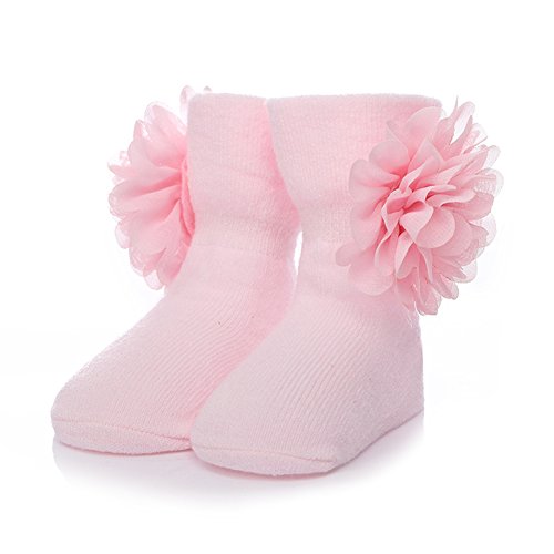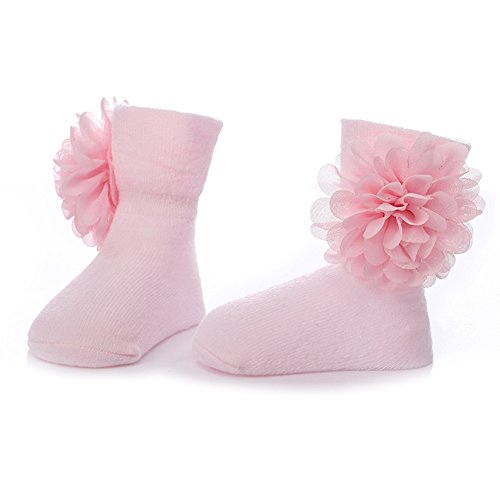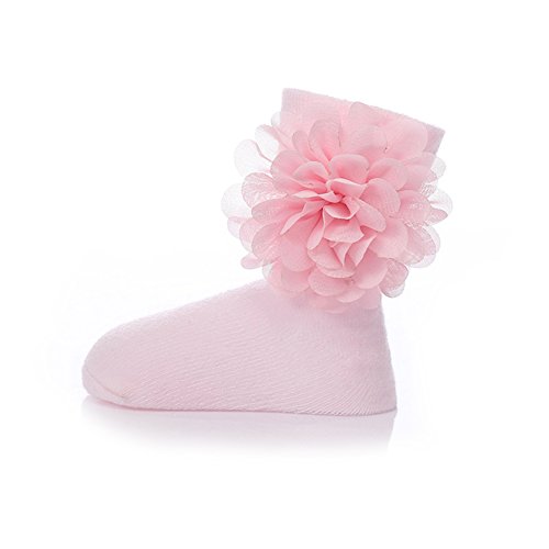 PUERI ベビー ソックス ベビー 靴下 新生児 赤ちゃん コットン 花飾り プリンセス 女の子 可愛い 出産祝い プレゼント (ピンク)