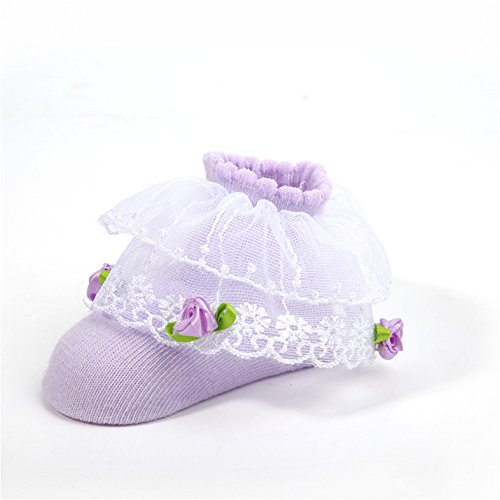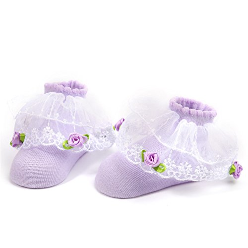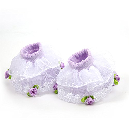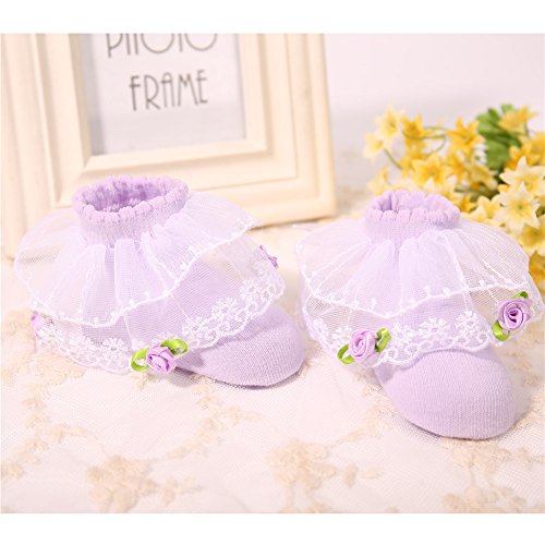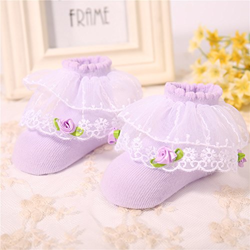 PUERI ベビー 靴下 新生児 ソックス レース付き プリンセス 女の子 新生児 可愛い ソフト 出産祝い 100日祝い (パープル)