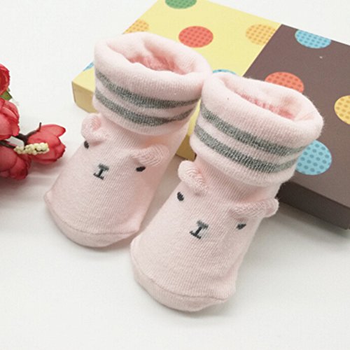 ベビー 靴下 ソックス 新生児 女の子 男の子 可愛い ソフト 出産祝い コットン 滑り止め 0-6ヶ月 (ピンク)