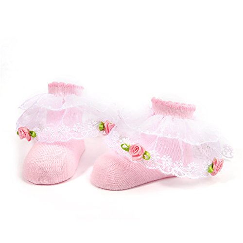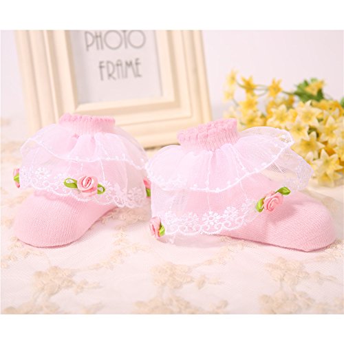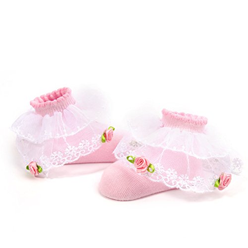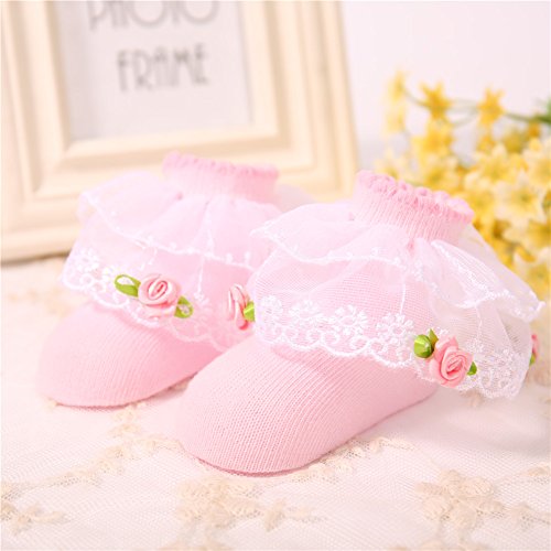 PUERI ベビー 靴下 新生児 ソックス レース付き プリンセス 女の子 新生児 可愛い ソフト 出産祝い 100日祝い (ピンク)