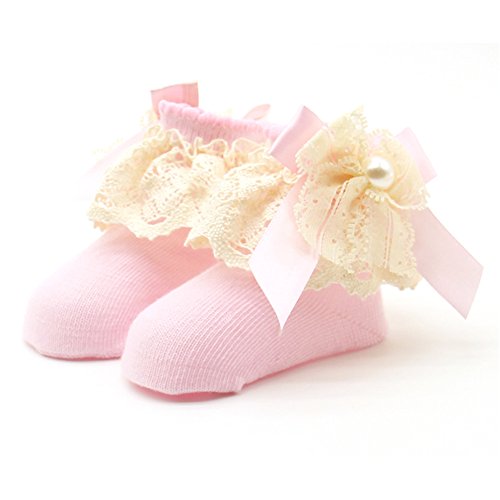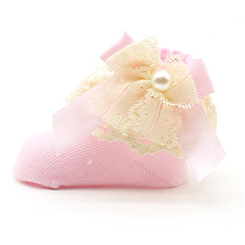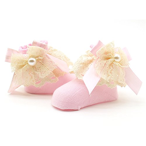 PUERI ベビー 靴下 ソックス 新生児 赤ちゃん ベビー コットン レース プリンセス 女の子 新生児 可愛い 出産祝い 誕生日 (ピンク)