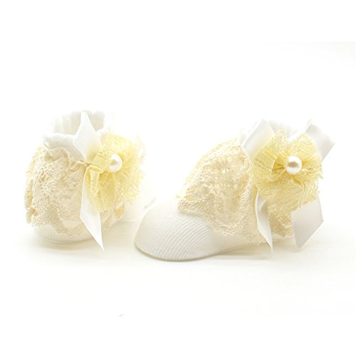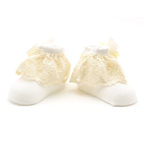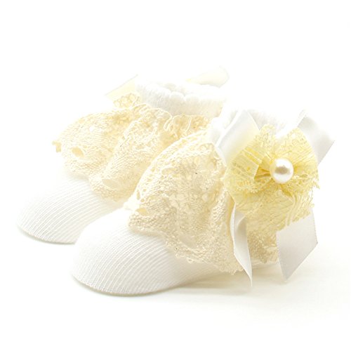 PUERI ベビー 靴下 ソックス 新生児 赤ちゃん ベビー コットン レース プリンセス 女の子 新生児 可愛い 出産祝い 誕生日 (ホワイト)